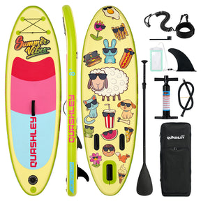 QUASHLEY kids paddle board is specially designed for children, it is built specifically to help kids learn how to SUP, and it has a lovely appearance, children will like it immediately. The middle part is designed with an wide anti-slippery EVA pad to increase the friction between feet and the board surface, so that’s more stable and safer for your children.