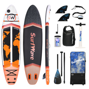 Pro Inflatable SUP Board, orange stand up paddle board 11ft All-Around inflatable stand up Paddle Board - Military-Grade for Surfing & Expedition, Includes Carbon Paddle & Pro Pump