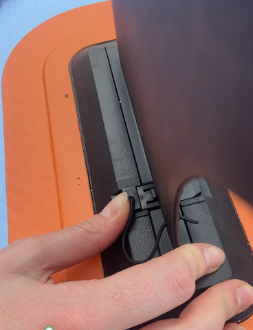 First you need to tell the orientation of the fins. The tip of the fin is towards the tail of the sup paddle. Then push the fin into the groove, and finally fix it with a clip.